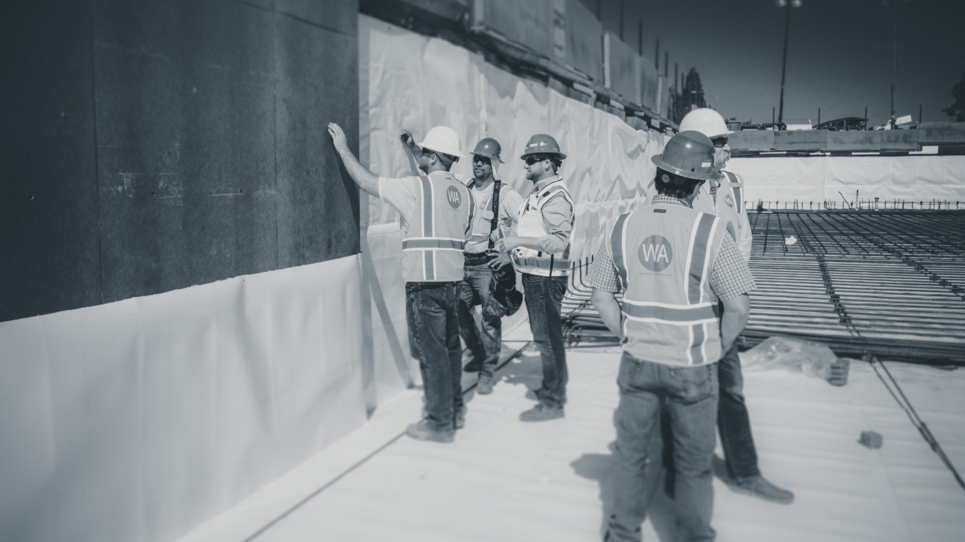 We install below grade systems which include various self-adhered, loose laid or vinyl heat welded membrane systems suitable for blindside walls, between slab and plaza decks. We also install hot rubber systems, cold appied systems, pressure injections, traffic and deck coating systems.